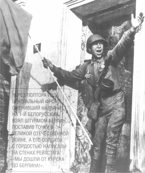 День празднования освобождения города Курска счи-тается 8-го февраля 1943 года. В это день было окончательно сломлено сопротивление гитлеровцев в центральной части города и было водружено знамя на здании Дома пионеров. К концу марта 1943 года на Курском выступе наступило относительное затишье в боях. Противоборствующие стороны приступили к созданию оборонительных сооружений, сосредоточению боевой техники и личного состава на занимаемых участках. Так, на центральном фронте северного фаса дуги про-тяжением 95 км было сосредоточено пятьдесят семь процен-тов стрелковых дивизий, восемьдесят семь процентов танков и самоходных орудий и семьдесят процентов артиллерии всех стволов. Это были войска Центрального фронта. По замыслу командования должны были принять главный удар гитлеровцев, направление которого проходило через станцию Поныри на Курск. На Воронежском фронте южного фаса дуги, на направлении вероятного удара, было сосредоточено восемьдесят три процента стрелковых дивизий, до девяноста процентов танков и самоходных орудий и более восьмидесяти процентов артиллерии из всего личного состава фронта. Однако основная задача командования фронтов заключалась в создании мощной и глубокоспланированной обороны наших войск, как главного условия по изматыванию и уничтожению сил противника. Такая оборона и была создана войсками фронтов за три месяца относительного затишья на Орловско-Курской дуге, и, как показали последующие события, эта оборона выдержала бронированный натиск противника. За короткий срок в районе Курского выступа было создано и оборудовано восемь оборонительных рубежей, об-щая глубина которых составляла двести пятьдесят, триста километров. Армии, занимающие первые эшелоны, построили по три оборонительных рубежа. Кроме этого, армии фронтов резерва построили по три оборонительных рубежа. В среднем, в каждой дивизии, занимавшей оборону в этой полосе, было отрыто до семидесяти траншей и ходов сообщения. Все это позволяло осуществлять маневр личным составом и огневыми средствами как по фронту, так и в глубину. Сооружались огневые точки в среднем шесть-семь на один километр. Одной из главных особенностей обороны Курского вы-ступа являлось то, что войска заблаговременно заняли четыре рубежа обороны: главная и вторая полосы были заняты полностью, тыловая и армейская полосы были заняты на направлении главного удара. Оборона создавалась с учетом возведения опорных противотанковых пунктов с установкой по 3-5 противотанковых орудий, два-пять минометов, до пяти противотанковых орудий, и усиливались взводом автоматчиков. В стрелковом полку первого эшелона на направлении главного удара оборудовалось по 3-5 противотанковых опор-ных пунктов. Плотность противотанковой артиллерии достигала 16-20 орудий на один километр фронта. На прямую наводку устанавливались орудия калибра 85 мм и 152 мм. На Центральном и Воронежском фронтах было откры-то по 4 200 км траншей и ходов сообщения по 28 000 стрел-ковых окопов, по 5 300 командных наблюдательных пунктов. Средняя плотность на минных полях достигала 1 500 противотанковых и до 1 700 противопехотных мин на один километр площади.