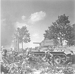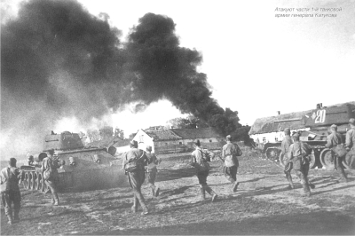 Утром 6-го июля 1943 года батальоны 70-й гв. СД сделали рывок в направлении Подсоборовки от высоты 230. Личный состав батальонов и танков по проходам в минных полях вырвался на простор и развернулся в цепь. Одновременно со стороны немцев выдвинулись цепи пехоты и танков. Началось невиданное по размерам в истории Отечест-венной войны огромное встречное сражение. Этот встреч-ный бой молодых ребят, наших солдат, трудно описать, но еще труднее воспринять его сознанием. В этом бою были за-действованы все виды оружия - от танков до кулаков и зубов. Таким он был - жестоким и беспощадным.
