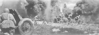 В ближнем бою 6-го июля 1943 года выкатывались на прямую наводку пушки разного калибра от 45 до 150 мм. 76-миллиметровая дивизионная пушка на прямой наводке.