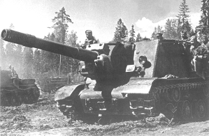 45-миллиметровая противотанковая пушка при поддержке рывка пехоты. Обладая хорошей маневренностью, успешно использовалась для подавления огневых точек про-тивника на переднем крае и в борьбе с легкими танками САУ-122 перед выходом на боевое задание. Впервые примененная в Орловско-Курском сражении, имела хорошую бронезащиту и на вооружении пушку крупного калибра. Это все обеспечивало превосходство над всеми танками, в том числе и над танком "Тигр"-VI. За эти качества мы, солдаты, называли эту САУ "Зверобой".