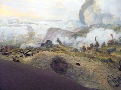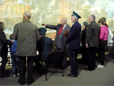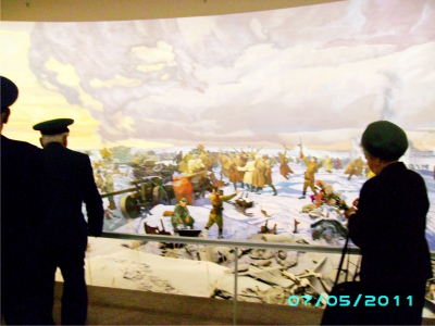 ПАНОРАМА ОБОРОНЫ МОСКВЫНемцы, напав на нас без объявления войны, рассчиты-вали на ее молниеносный исход. Расчет строился на полный разгром наших вооруженных сил и беспрепятственное дви-жение вперед. Да, немцы подошли к Москве в районе Воло-коламского шоссе, им до Москвы оставалось всего 25 кило-метров. Но тут на их пути стояли сибирские дивизии – генерала Панфилова и полковника Белобородова. Они-то и создали непреодолимый рубеж для немцев. Вся эпопея обороны Москвы изложена в панораме, на которую без волнения смотреть невозможно. В битве под Москвой были сорваны планы немцев на-счет молниеносной войны, похоронен блиц-криг. В битве под Москвой было показано и продемонстрировано то, что Красная Армия умеет не только отступать, но и наступать. Память о героизме защитников Москвы у нашего поколения, а также будущих поколений должна быть вечна.