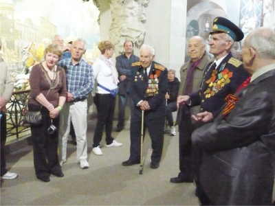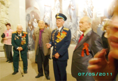 Во время осмотра панорамы мне пришлось познако-миться с группой англичан, человек пятнадцать, они тоже осматривали панораму. Через переводчика попросили меня, если можно, ответить на несколько их вопросов. Я согласился. Вопросы были биографического характера, такие как: Откуда я родом? Когда был призван в армию? Где начал воевать? Какое у меня воинское звание? И тому подобное. По окончании беседы я их поздравил с днем Победы. Вместе с этим попросил передать поздравление их Королеве и всему английскому народу, так как мы были в одном союзе в борьбе с фашизмом. Они это встретили с одобрением и попросили дать им возможность пожать мою руку. Обменявшись рукопожатиями, мы расстались, пожелав друг другу всего наилучшего в жизни и крепкого здоровья.