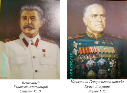 Высший состав командования Красной Армии представлен в музее всеми маршалами во главе со Сталиным.