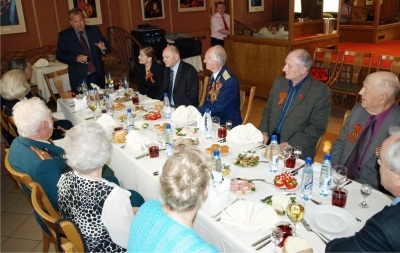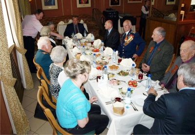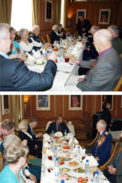 По окончании экскурсионных посещений мы вернулись в гостиницу «Алтай», где представительством при Правительстве Российской Федерации был дан обед в честь дня Победы.