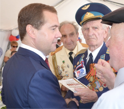 Д. Медведевым на фронтовом обеде 23 августа 2013 г. в г.Курск
