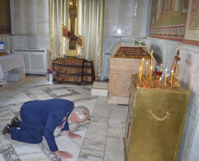 Троекратный земной поклон от земли Алтайской от жителей Земли Алтайской, небольшого городка Рубцовска у алтаря памяти в храме на Прохоровском поле в память о тех, кто пал смертью героя на огненной земле Орловско-Курского сражения в июле-августе 1943 года.