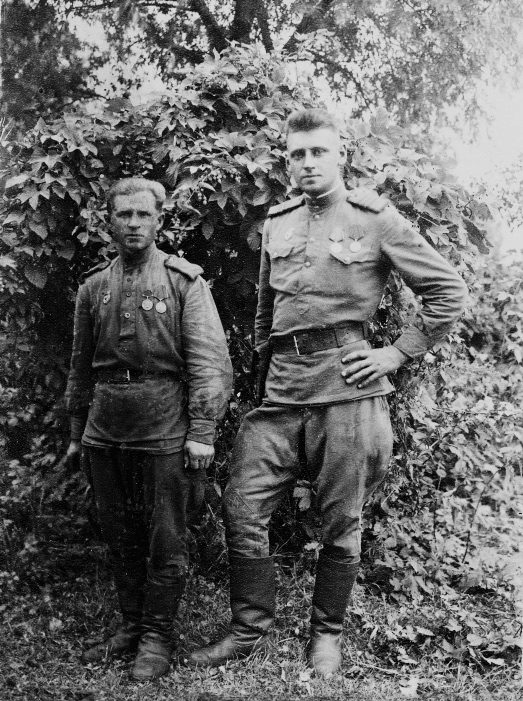 Фронтовые друзья. Слева Козлов К.П.