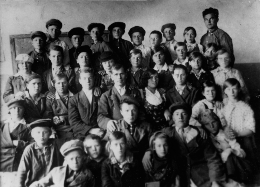 Учителя и школьники 6-го класса Кизихинской НСШ Рубцовского района.