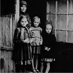 Бабушка Козлова Е.И. с внучками Галей, Лидой и Людой.