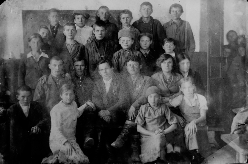 Учителя и школьники 6-го класса Кизихинской НСШ Рубцовского района.