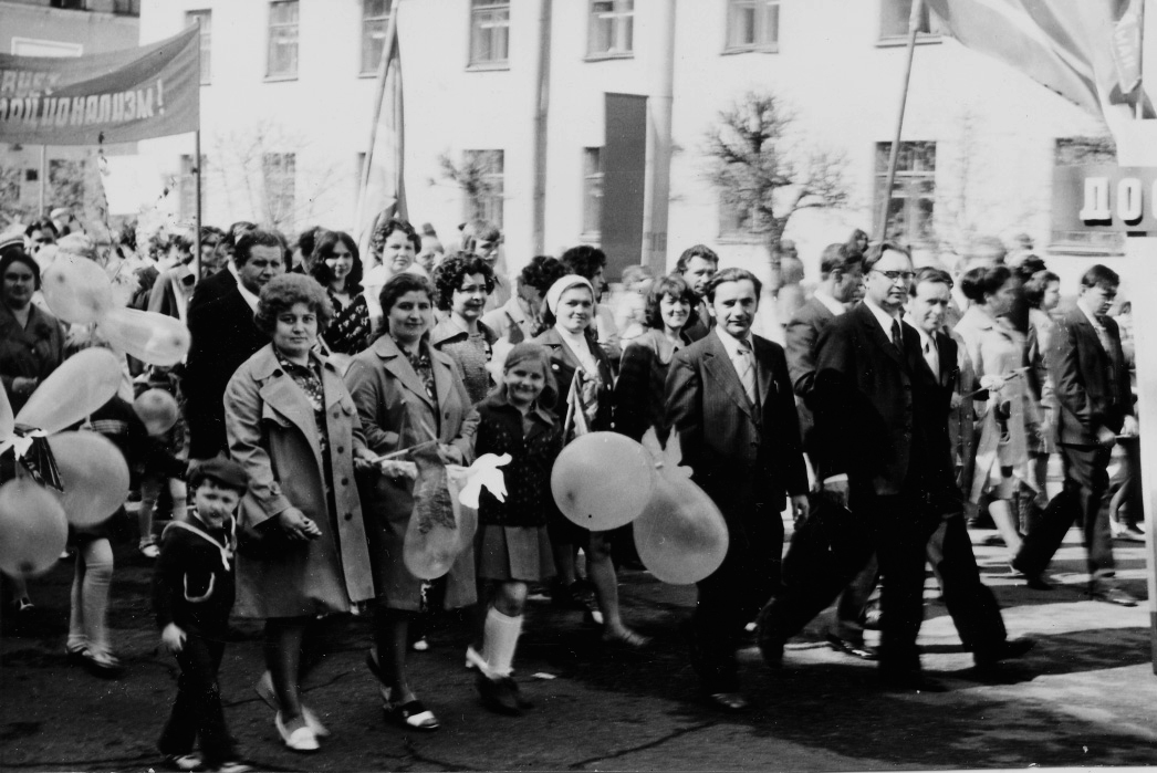 на первомайской демонстрации. Впереди второй Козлов В.П.